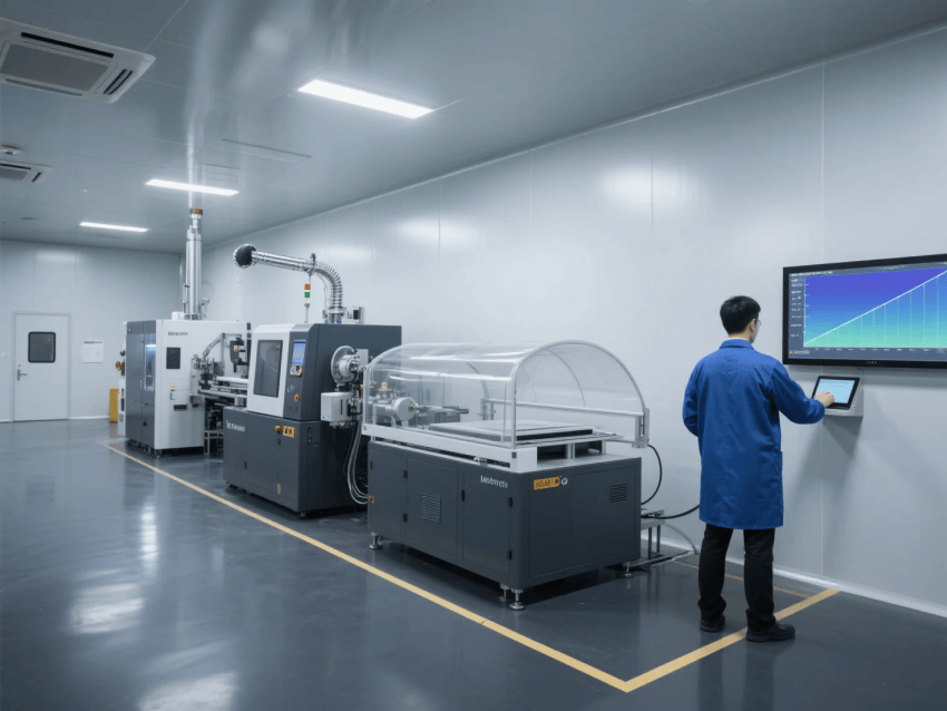 空氣凈化系統(tǒng)采用FFU+ULPA超高效過濾組合,換氣次數(shù)≥40次/h,核心鍍膜區(qū)設(shè)置Class100潔凈工作臺;