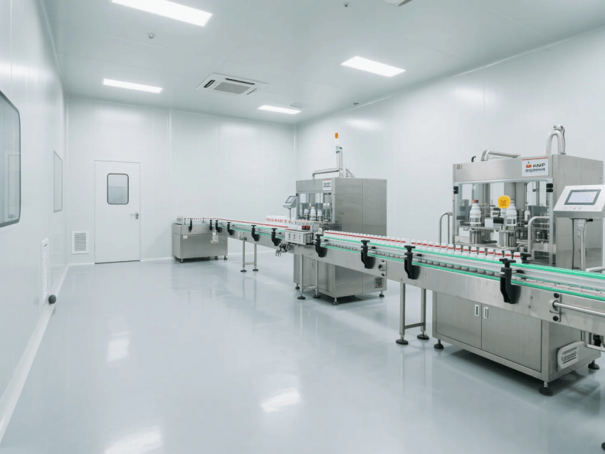 本工程嚴(yán)格遵循GMP及ISO14644-1Class8標(biāo)準(zhǔn),專為無菌制劑灌裝生產(chǎn)打造高標(biāo)準(zhǔn)潔凈環(huán)境。整體采用醫(yī)療級(jí)白色抗菌彩鋼板與淺灰環(huán)氧自流平地坪的潔凈配色方案,營(yíng)造